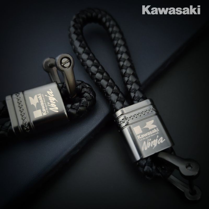 Gantungan kunci kulit motor kawasaki ninja model tali anyam