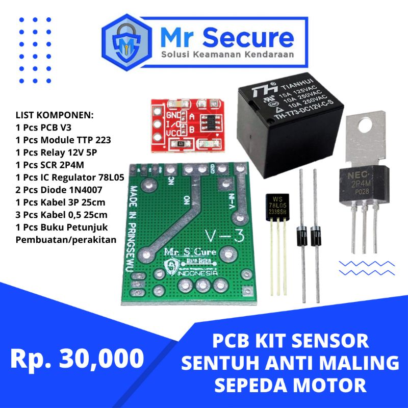 Paket DIY PCB KIT SENSOR SENTUH ANTI MALING TTP 223 UNTUK SEPEDA MOTOR
